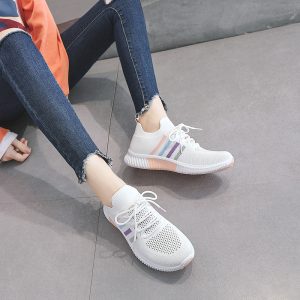 Summer colorful striped low-top sneakers, casual and versatile white shoes, fly-woven mesh mesh shoes, flat-soled students Upper material: fly knitted thread Sole material: rubber Applicable gender: Female Upper height: low Sole technology: injection molded shoes Wearing method: front tie Popular elements: sewing thread Function: anti-slip, wear-resistant